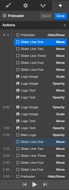 6. Modify the Main logo Text animations from the right panel. Follow below pic :